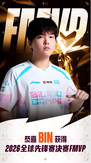 此外,BLG战队的上路陈泽彬(Bin)选手也凭借决赛中优异的表现,获得本次2026全球先锋赛FMVP的殊荣!